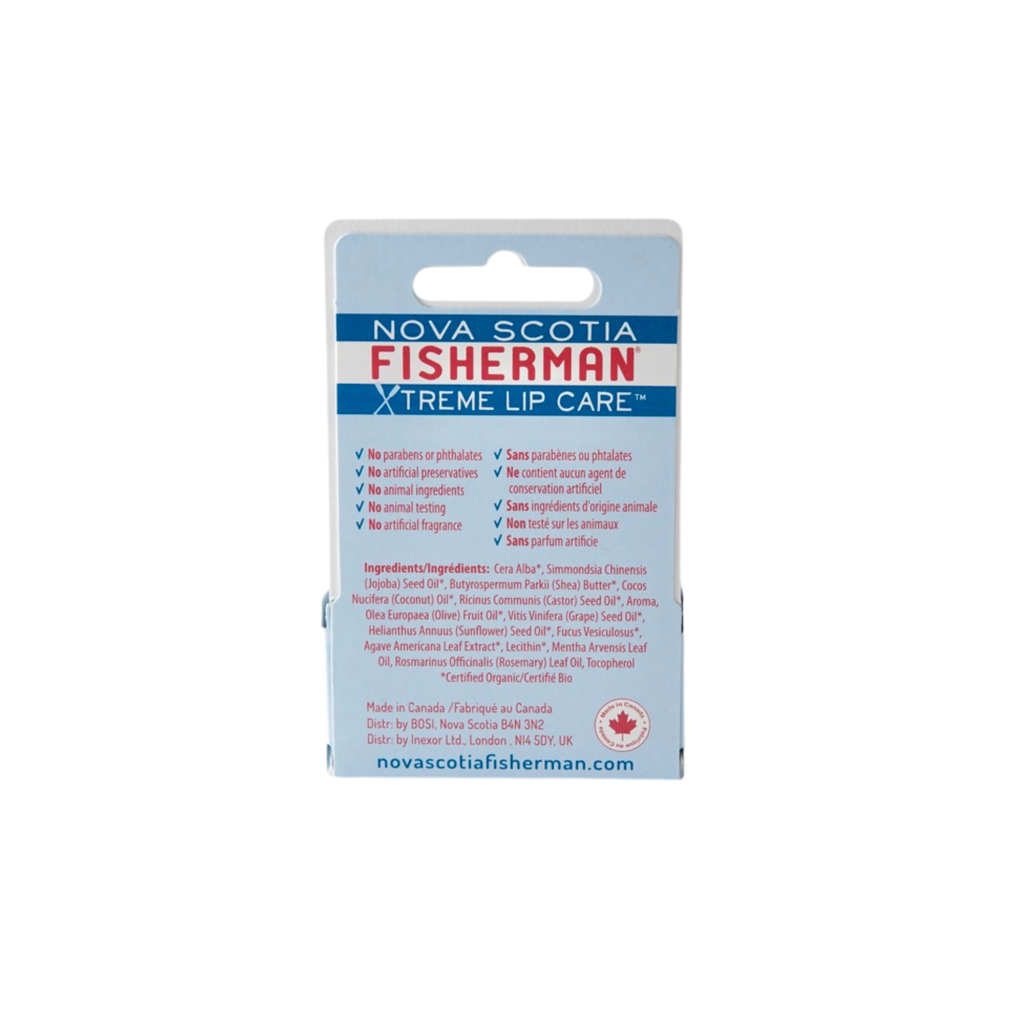 Canadian Beeswax*, Jojoba*, Shea*, Coconut Oil*, Castor*, Olive Oil*, Vitamin E, Nova Scotia Sea Kelp*