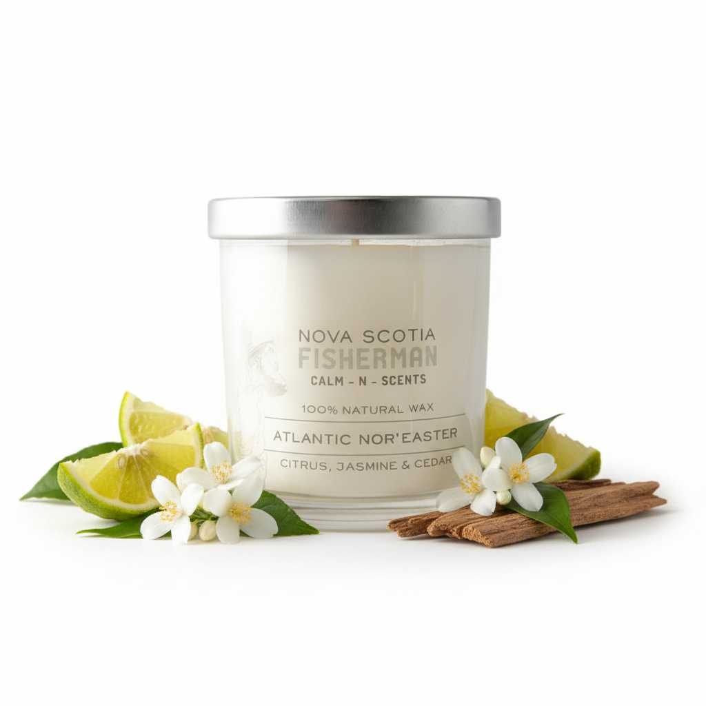Take your senses on a stormy Atlantic voyage with thundering waves of crisp air and mineral citrus colliding afront a landscape of fir trees, home before the Nor'Easter