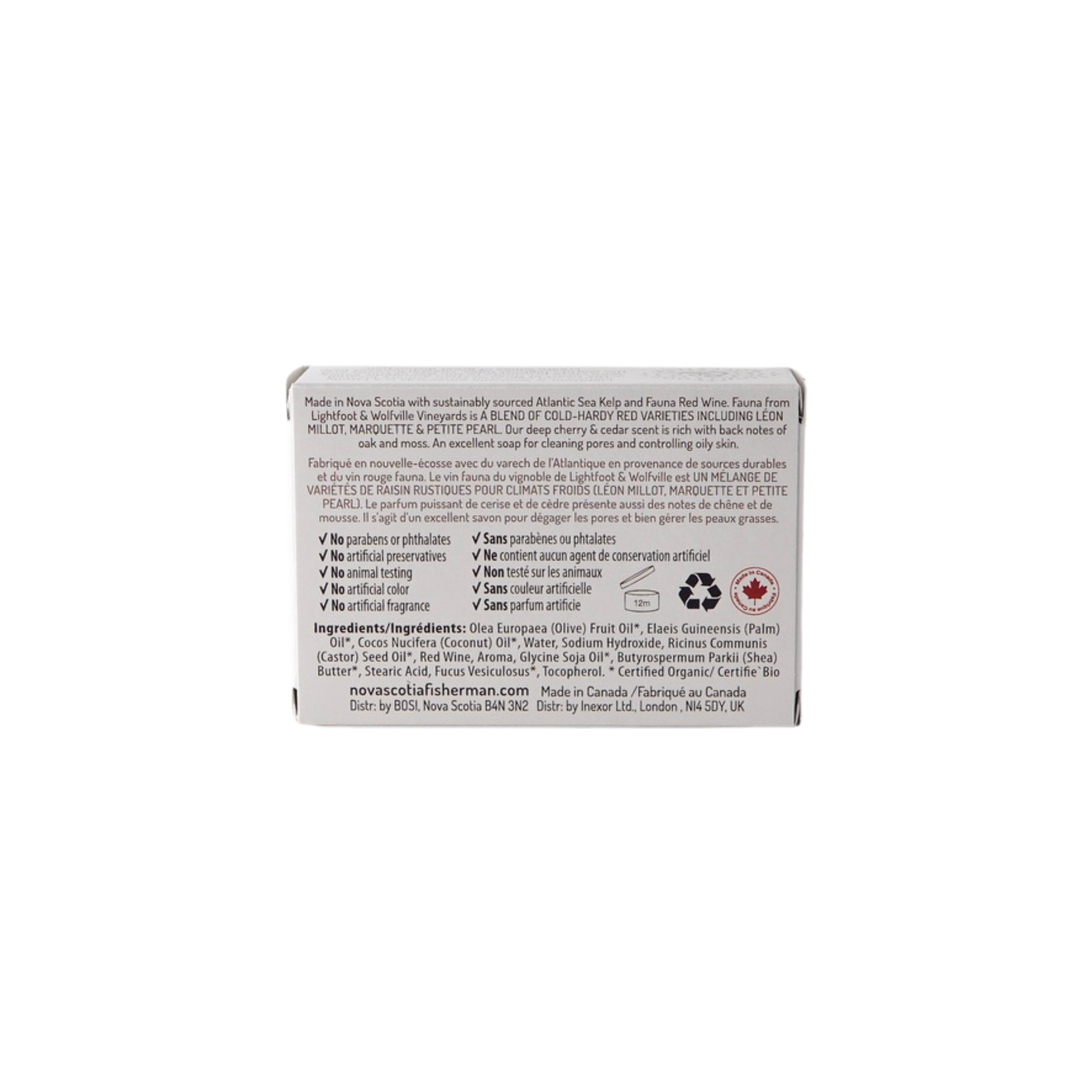 Nova Scotia Fisherman with Lightfoot & Wolfville Vineyard collaborate to bring you a full-bodied experience of local variety. This premium soap bar is created in small batches, aged to perfection, keeping a close eye to detail and completely inspired by vines and seas.