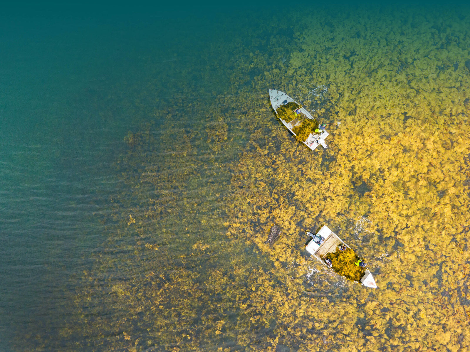 Sustainable hand-harvesting ensures the kelp is trimmed like grass, encouraging growth while protecting vibrant ecosystems and the sea beds